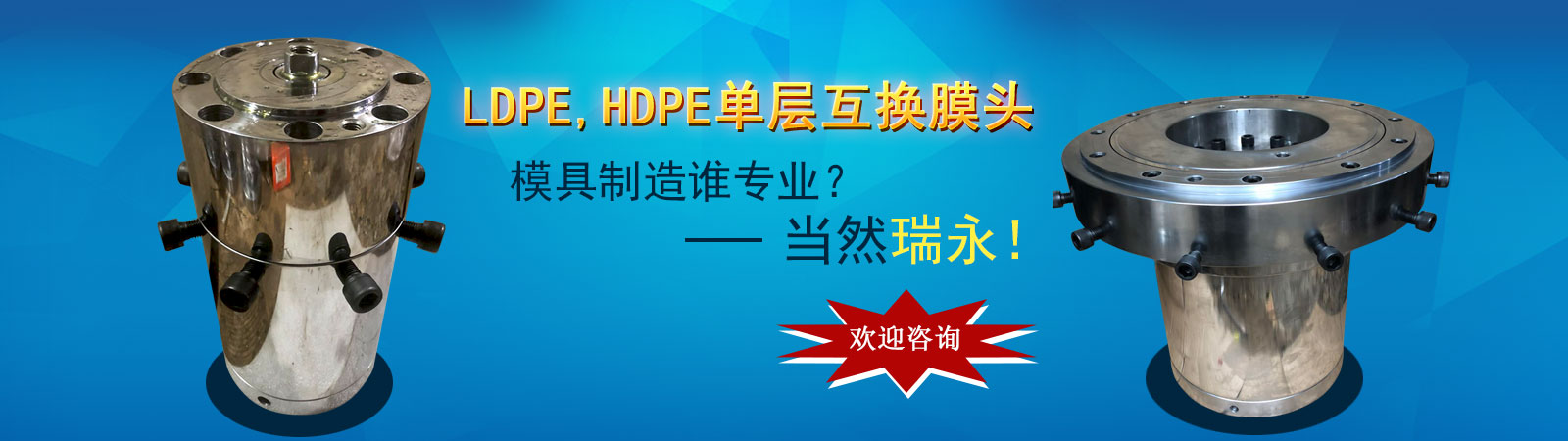 瑞安市瑞永模具有限公司是一家科研、制造、銷售、服務為一體的綜合性企業。專業生產各種規格的吹膜機膜頭、